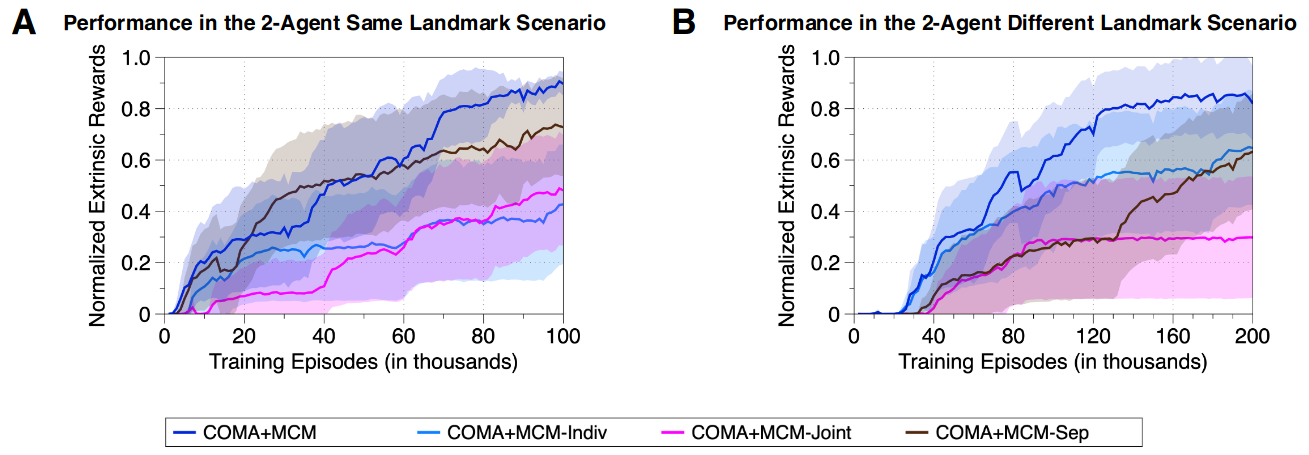 - COMA+MCM-Joint: each agent only use the joint prediction error from its MCM